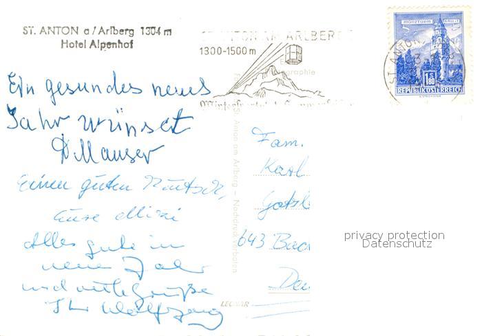 12910319 alte Postkarte St Anton Arlberg Hotel Alpenhof postalisch gelaufen Erhaltung siehe scans [AndreD76] KatCode: 11390334070621