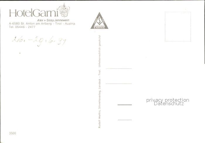72920676 St Anton Arlberg Hotel Garni Alex Sissy Jennenwein postalisch nicht gelaufen Erhaltung siehe scans [NatalD47] KatCode: 11390334070621