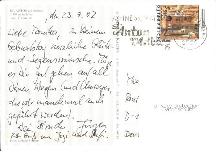 72438993 alte Postkarte St Anton Arlberg Kirche postalisch gelaufen Erhaltung siehe scans KatCode: 11390334070621