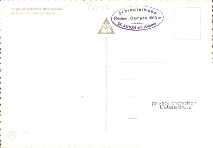 72032015 St Anton Arlberg Schindler-Sessellift Cafe-Restaurant Gampen postalisch nicht gelaufen Erhaltung siehe scans KatCode: 11390334070621