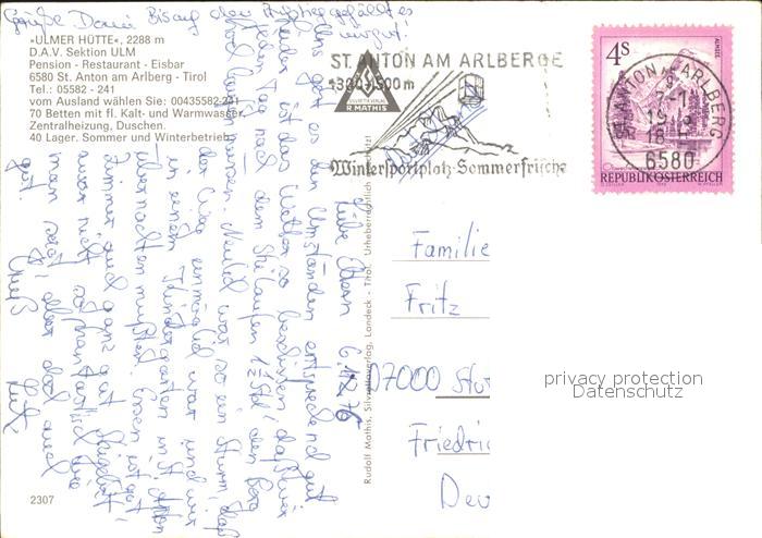 71822374 alte Postkarte St Anton Arlberg Ulmer Huette Details Eisbar postalisch gelaufen KatCode: 11390334070621