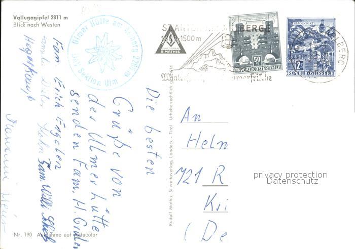 72491579 alte Postkarte St Anton Arlberg Vallugagipfel Lechtaler Alpen Blick nach Westen postalisch gelaufen Erhaltung siehe scans KatCode: 11390334070621