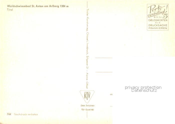 73649698 St Anton Arlberg Waldschwimmbad postalisch nicht gelaufen Erhaltung siehe scans [WerneD78] KatCode: 11390334070621