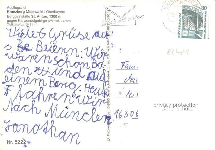 71994494 alte Postkarte St Anton Kranzberg Berggaststaette postalisch gelaufen Erhaltung siehe scans KatCode: 11110009180117