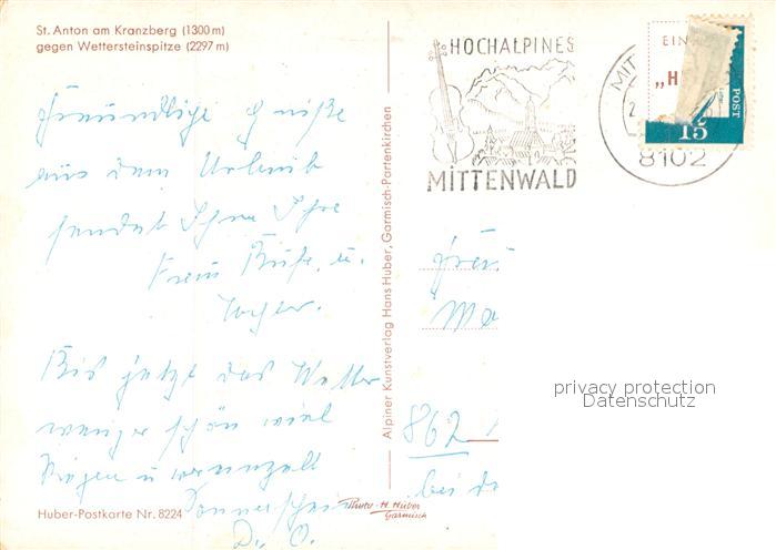 73704107 alte Postkarte St Anton Kranzberg Berghaus gegen Wettersteinspitze Enzian Huber Postkarte Nr. 8224 postalisch gelaufen Erhaltung siehe scans [FriedD77] KatCode: 11110009180117