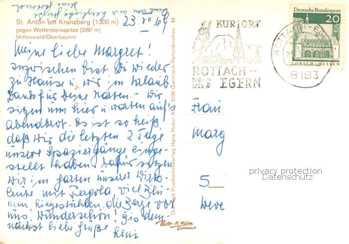 73719529 alte Postkarte St Anton Kranzberg Hotel Restaurant gegen Wettersteinspitze postalisch gelaufen Erhaltung siehe scans [FriedD77] KatCode: 11110009180117
