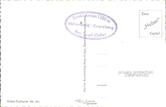 72006900 St Anton Kranzberg Karwendelgebirge Foto-H.-Huber-Nr. 526 postalisch nicht gelaufen Erhaltung siehe scans KatCode: 11110009180117