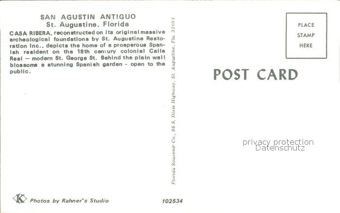 72306059 St Augustine Antiguo Pferdekutsche postalisch nicht gelaufen Erhaltung siehe scans KatCode: 14140110000000