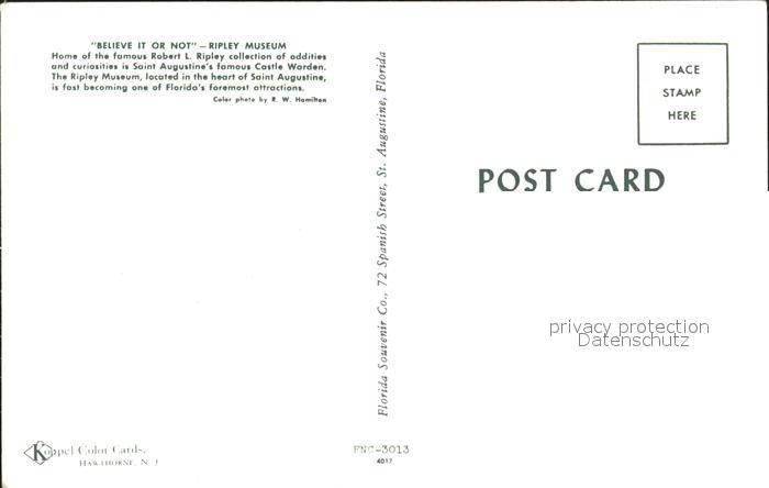 72132706 St Augustine Believe it or Not Ripley Museum postalisch nicht gelaufen Erhaltung siehe scans KatCode: 14140110000000