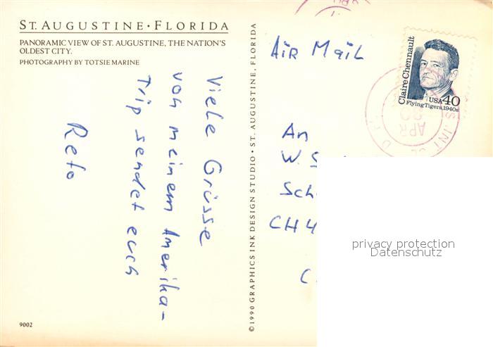 73296548 old postcard St Augustine Panorama postalisch gelaufen Erhaltung siehe scans [WerneD78] KatCode: 14140110000000