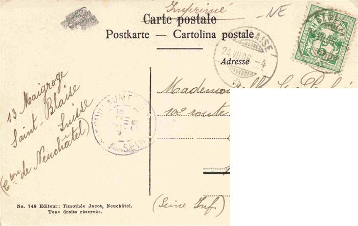 13960618 alte Postkarte St Blaise NE Eglise Kirche postalisch gelaufen Erhaltung siehe scans [FriedD77] KatCode: 11470130420154