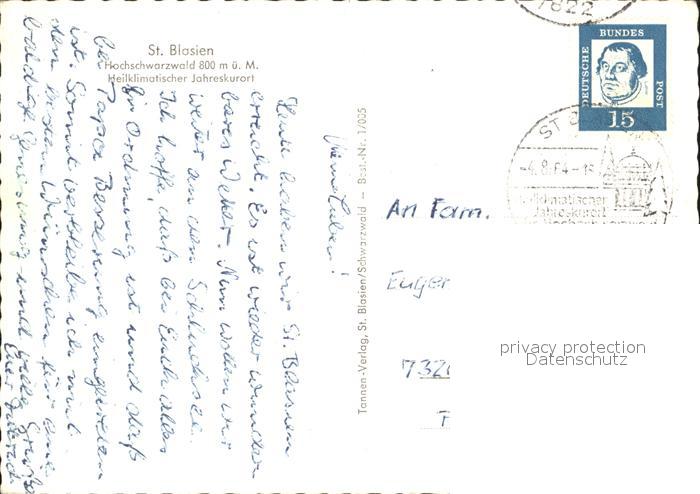 72349431 alte Postkarte St Blasien postalisch gelaufen Erhaltung siehe scans KatCode: 11110008337097