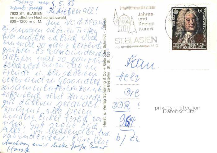 72654373 alte Postkarte St Blasien Basilika postalisch gelaufen Erhaltung siehe scans [WerneD78] KatCode: 11110008337097