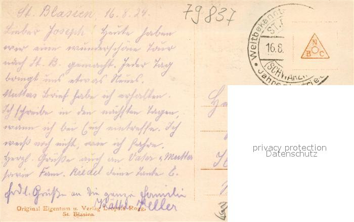73576113 alte Postkarte St Blasien Blick vom Holzberg postalisch gelaufen Erhaltung siehe scans [WerneD78] KatCode: 11110008337097