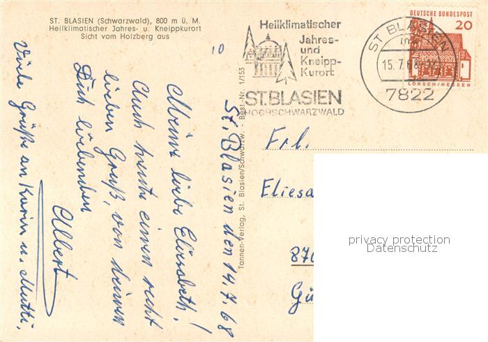 73779335 alte Postkarte St Blasien Blick vom Holzberg postalisch gelaufen Erhaltung siehe scans [WerneD78] KatCode: 11110008337097