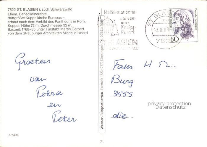72505303 alte Postkarte St Blasien Ehemalige Benediktinerabtei Kuppelkirche postalisch gelaufen Erhaltung siehe scans KatCode: 11110008337097