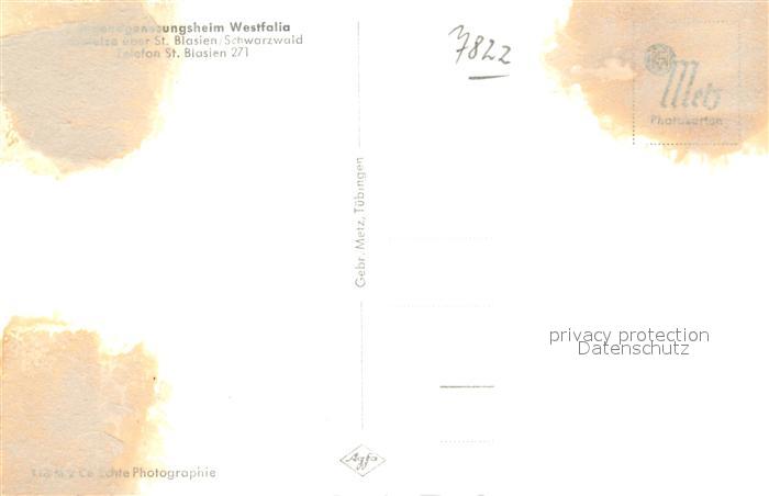 42941014 St Blasien Erholungsheim Westfalia postalisch nicht gelaufen Erhaltung siehe scans [AndreD76] KatCode: 11110008337097