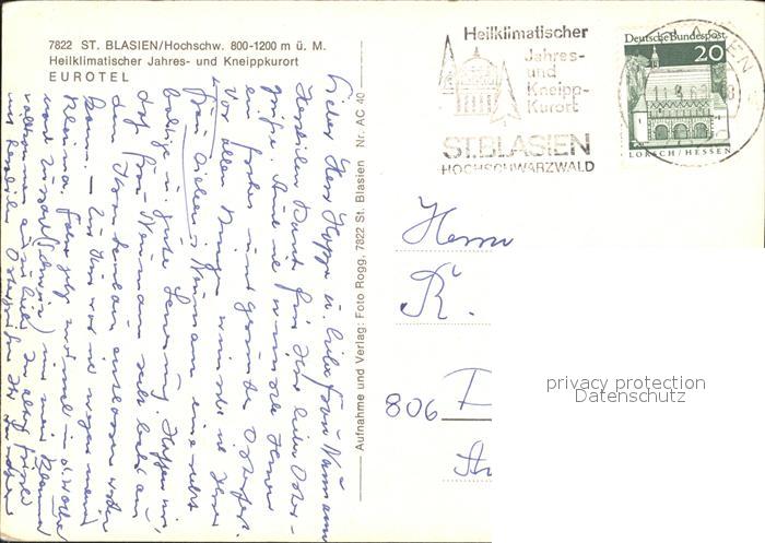 72404108 alte Postkarte St Blasien Eurotel postalisch gelaufen Erhaltung siehe scans KatCode: 11110008337097