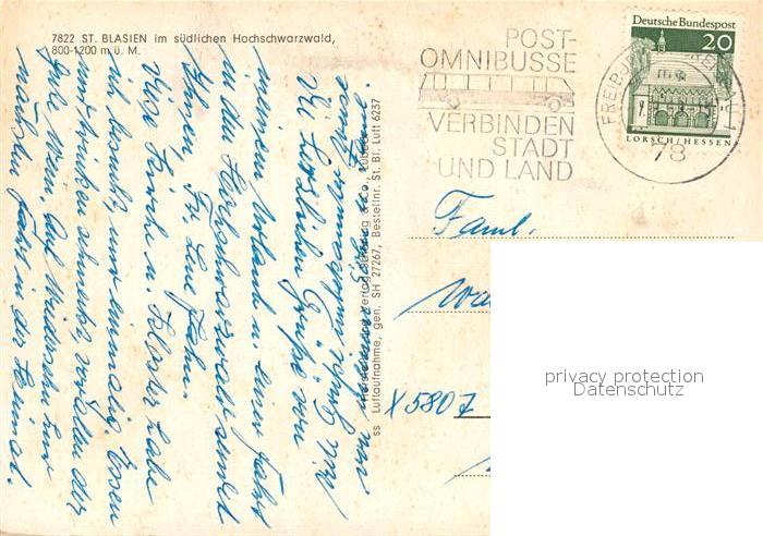 73054855 alte Postkarte St Blasien Fliegeraufnahme postalisch gelaufen Erhaltung siehe scans [WerneD78] KatCode: 11110008337097