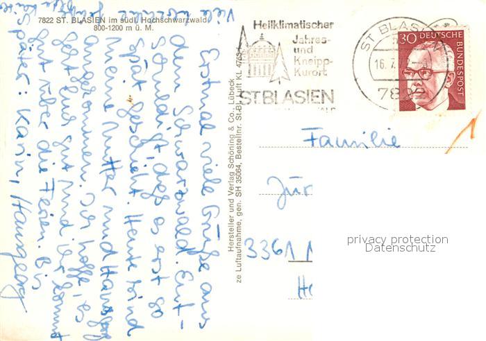 72987566 alte Postkarte St Blasien Fliegeraufnahme postalisch gelaufen Erhaltung siehe scans [LiesaD40] KatCode: 11110008337097