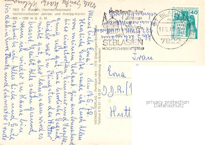 73656251 alte Postkarte St Blasien Fliegeraufnahme postalisch gelaufen Erhaltung siehe scans [WerneD78] KatCode: 11110008337097