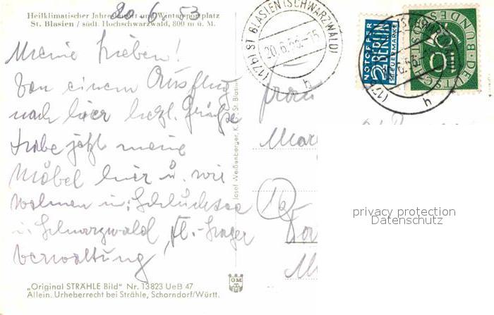 72791599 alte Postkarte St Blasien Fliegeraufnahme postalisch gelaufen Erhaltung siehe scans [AndreD76] KatCode: 11110008337097