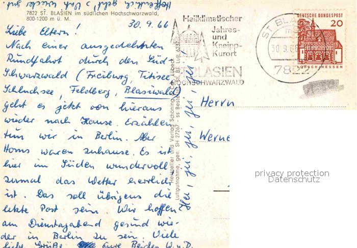 72754467 alte Postkarte St Blasien Fliegeraufnahme postalisch gelaufen Erhaltung siehe scans [WerneD78] KatCode: 11110008337097