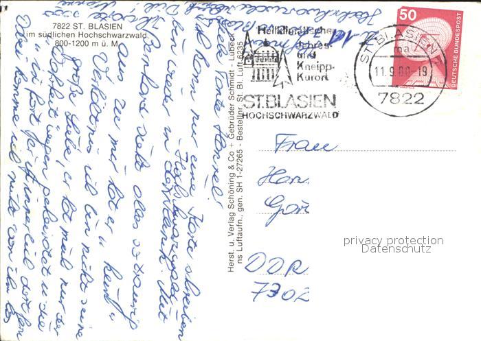 72543494 alte Postkarte St Blasien Fliegeraufnahme postalisch gelaufen Erhaltung siehe scans [WerneD78 kv016box] KatCode: 11110008337097