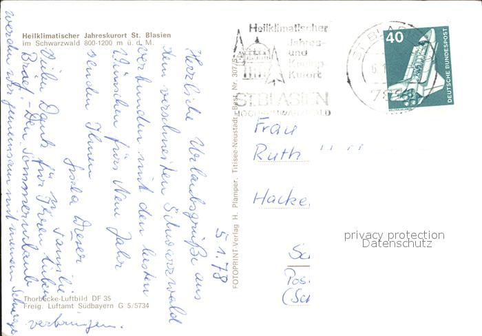 alte Postkarte St Blasien Fliegeraufnahme postalisch gelaufen Erhaltung siehe scans