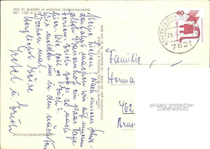 alte Postkarte St Blasien Fliegeraufnahme postalisch gelaufen Erhaltung siehe scans