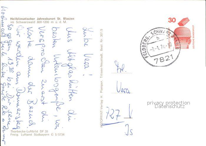71939988 alte Postkarte St Blasien Fliegeraufnahme postalisch gelaufen Erhaltung siehe scans KatCode: 11110008337097