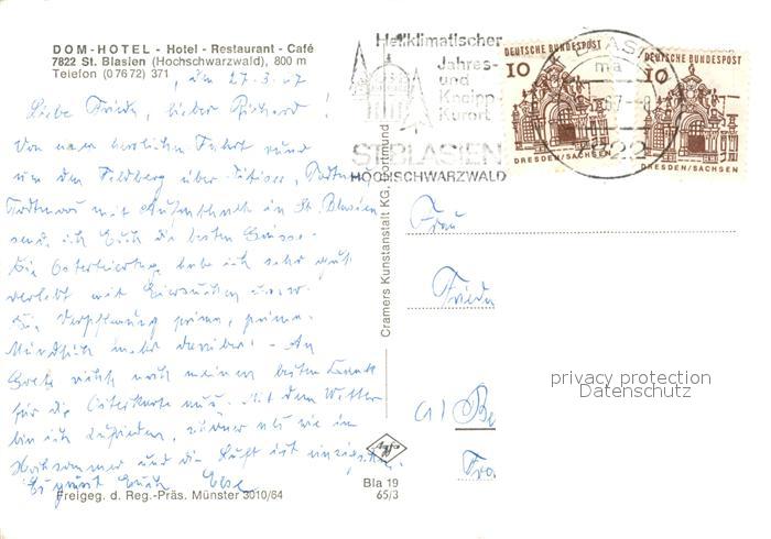 73163862 alte Postkarte St Blasien Fliegeraufnahme Dom Hotel postalisch gelaufen Erhaltung siehe scans [WerneD78] KatCode: 11110008337097
