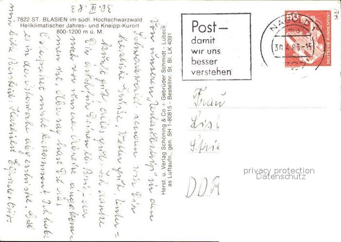 72466426 alte Postkarte St Blasien Fliegeraufnahme mit Feldberg postalisch gelaufen Erhaltung siehe scans KatCode: 11110008337097