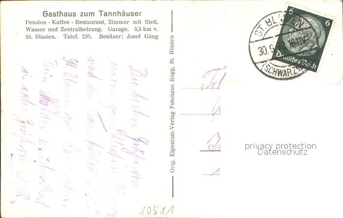 32030041 alte Postkarte St Blasien Gasthaus zum Tannhaeuser postalisch gelaufen Erhaltung siehe scans KatCode: 11110008337097