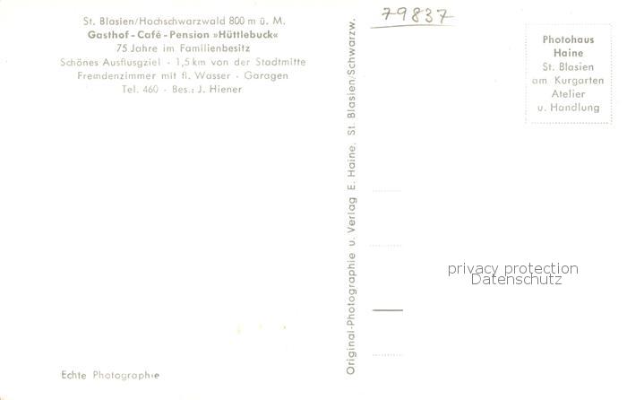 73759735 St Blasien Gasthof cafe Huettlebuck postalisch nicht gelaufen Erhaltung siehe scans [LiesaD40] KatCode: 11110008337097