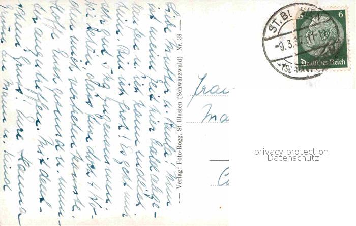 72791598 alte Postkarte St Blasien Hans Thomaweg postalisch gelaufen Erhaltung siehe scans [AndreD76] KatCode: 11110008337097