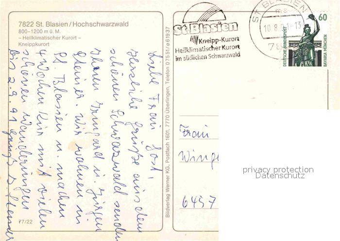 72832015 alte Postkarte St Blasien Heilklimatischer Kneippkurort Schwarzwald Fliegeraufnahme postalisch gelaufen Erhaltung siehe scans [FriedD77] KatCode: 11110008337097
