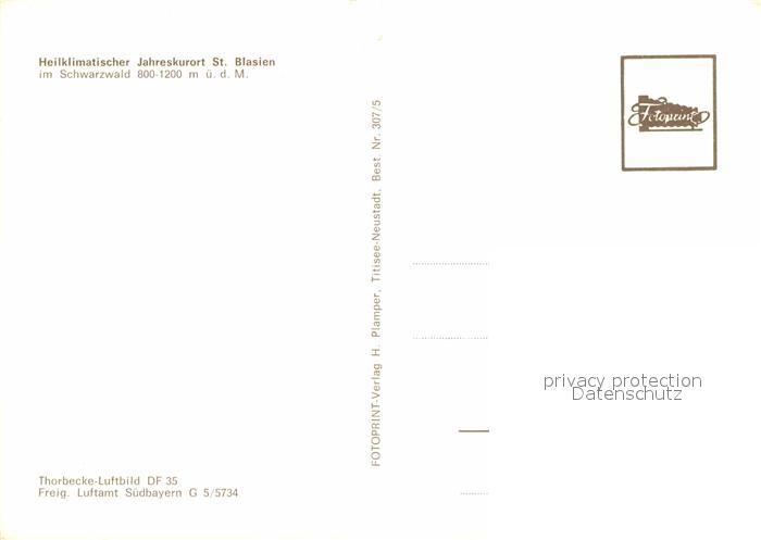 72666322 St Blasien Heilklimatischer Kurort Schwarzwald Fliegeraufnahme postalisch nicht gelaufen Erhaltung siehe scans [FriedD77] KatCode: 11110008337097