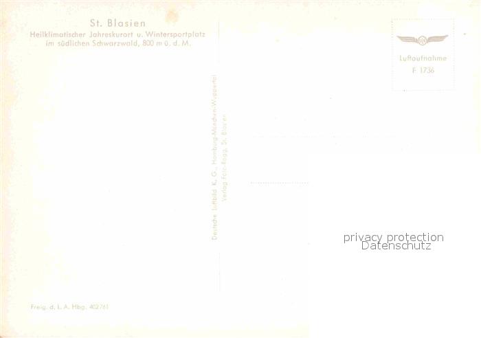 72833705 St Blasien Heilklimatischer Kurort Wintersportplatz im Schwarzwald Fliegeraufnahme postalisch nicht gelaufen Erhaltung siehe scans [FriedD77] KatCode: 11110008337097