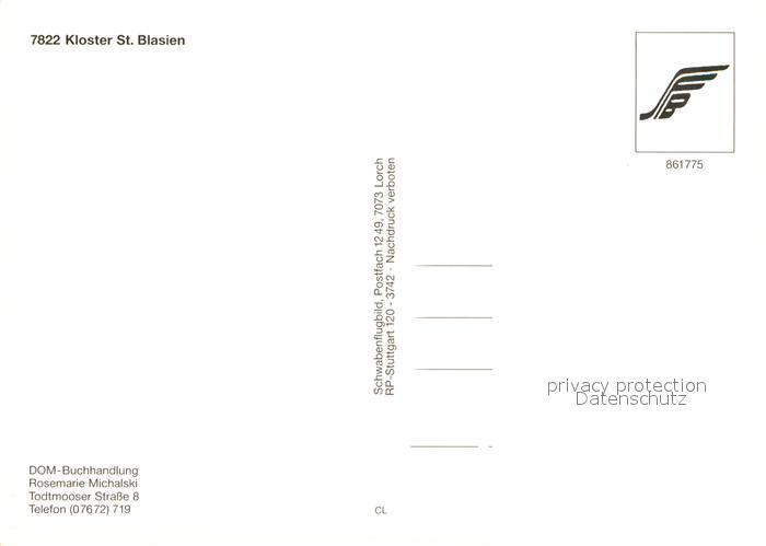 73540813 St Blasien Kloster Fliegeraufnahme postalisch nicht gelaufen Erhaltung siehe scans [WerneD78] KatCode: 11110008337097