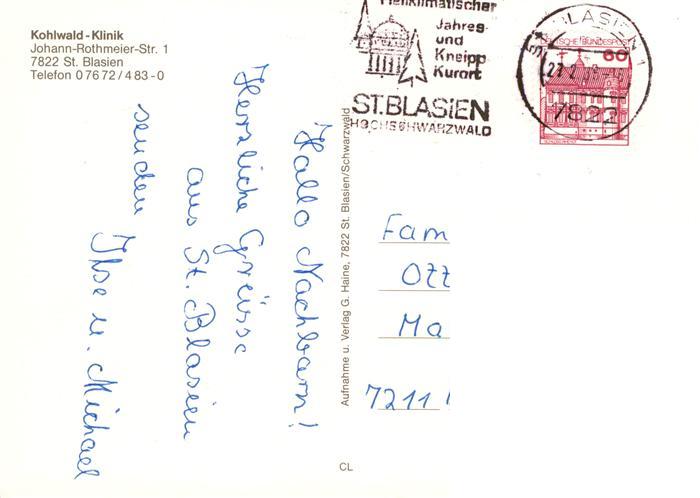 73908715 alte Postkarte St Blasien Kohlwald Klinik postalisch gelaufen Erhaltung siehe scans [WerneD78] KatCode: 11110008337097