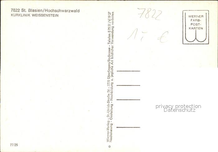 72417449 St Blasien Kurklinik Weissenstein postalisch nicht gelaufen Erhaltung siehe scans KatCode: 11110008337097