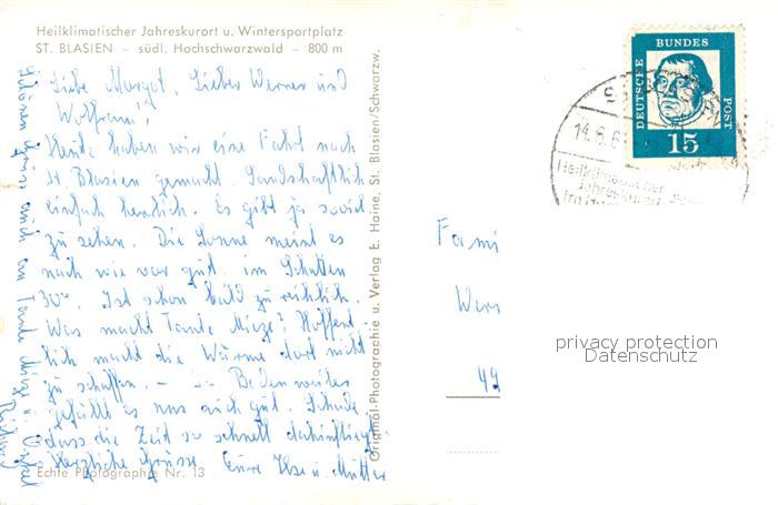 73018053 alte Postkarte St Blasien Ortsansicht mit Dom postalisch gelaufen Erhaltung siehe scans [WerneD78] KatCode: 11110008337097
