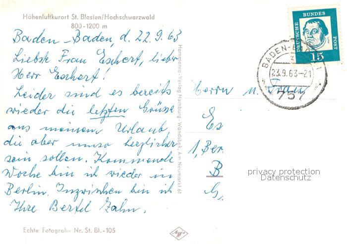 73656240 alte Postkarte St Blasien Panorama postalisch gelaufen Erhaltung siehe scans [WerneD78] KatCode: 11110008337097