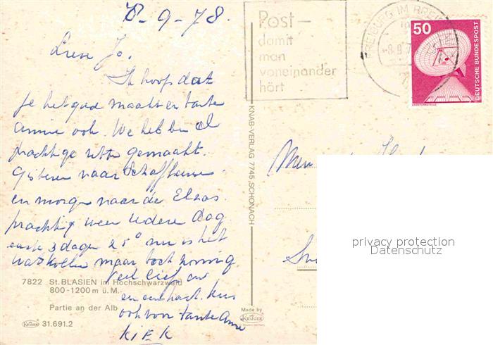72661264 alte Postkarte St Blasien Partie an der Alb postalisch gelaufen Erhaltung siehe scans [WerneD78] KatCode: 11110008337097