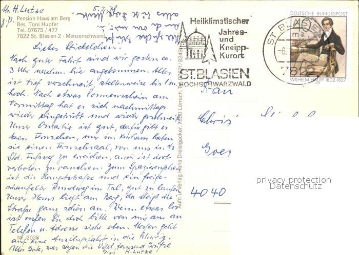 72277215 alte Postkarte St Blasien Pension Haus am Berg postalisch gelaufen Erhaltung siehe scans KatCode: 11110008337097