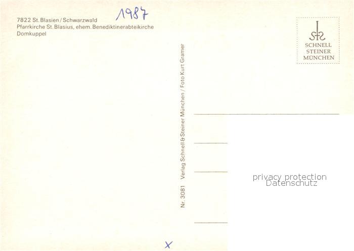 73012193 St Blasien Pfarrkirche Sankt Blasius Benediktinerabteikirche Domkuppel postalisch nicht gelaufen Erhaltung siehe scans [KathaD81] KatCode: 11110008337097