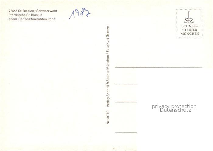 73012194 St Blasien Pfarrkirche Sankt Blasius Benediktinerabteikirche postalisch nicht gelaufen Erhaltung siehe scans [KathaD81] KatCode: 11110008337097