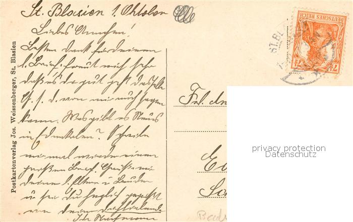 43491513 alte Postkarte St Blasien Philosophenweg postalisch gelaufen Erhaltung siehe scans [KathaD81] KatCode: 11110008337097