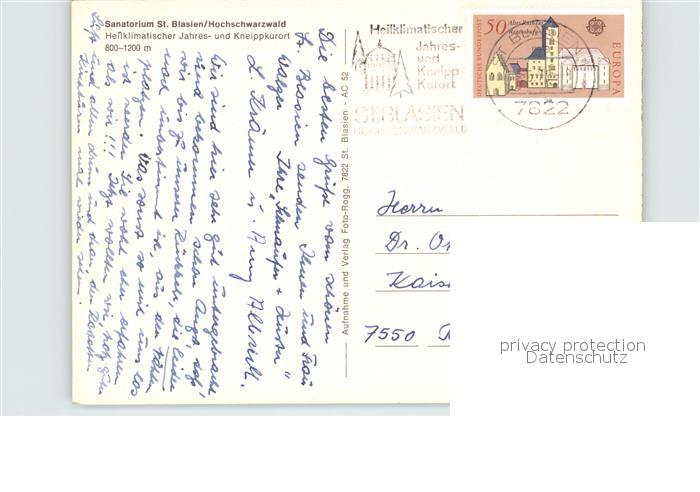 72533413 alte Postkarte St Blasien Sanatorium postalisch gelaufen Erhaltung siehe scans [AndreD76 kt113box] KatCode: 11110008337097